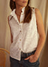 Confeccionada en broderie 100% algodón, la Blusa Sintra es fresca y femenina. Su cuello alto está enmarcado con un volante que recorre la tapeta de botones, aportando movimiento y un aire romántico. El bordado de la tela resalta su textura ligera, perfecta para los días de calor.