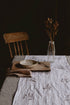 Camino de mesa rayado 100% lino Stone Washed de 280g con ilustraciones de flores impresas en serigrafía.