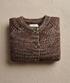 Chaleco de Baby Alpaca en punto inglés. Manga larga ligeramente globo, escote redondo.