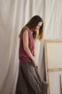 Chaleco de algodón sin mangas con escote en V. Cierre frontal con botones.