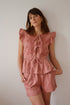 Short en lino y algodón color marsala con pinzas y cintura elasticada.