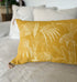 Funda de cojín de Lino color Cúrcuma con impresión de palmeras en serigrafía.