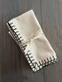 Set de 4 servilletas de lino y algodón crudo orilladas a mano con hilo color negro.