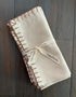 Set de 4 servilletas de lino y algodón crudo orilladas a mano con hilo color camel.